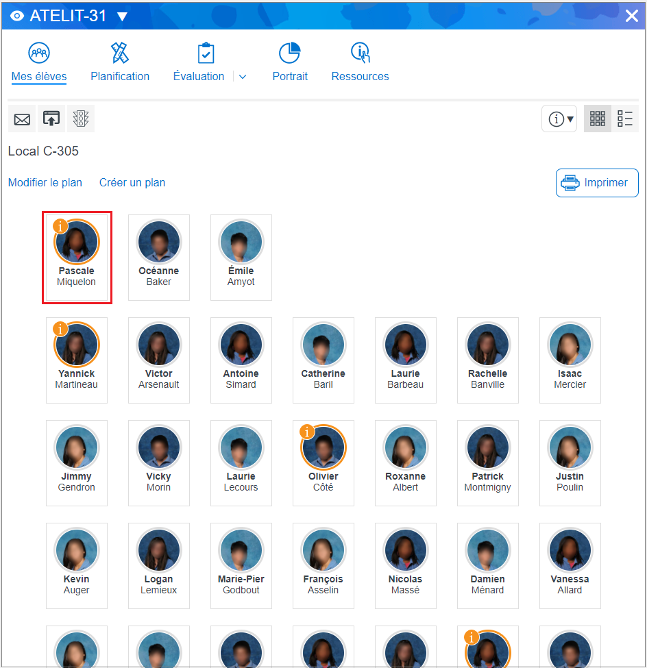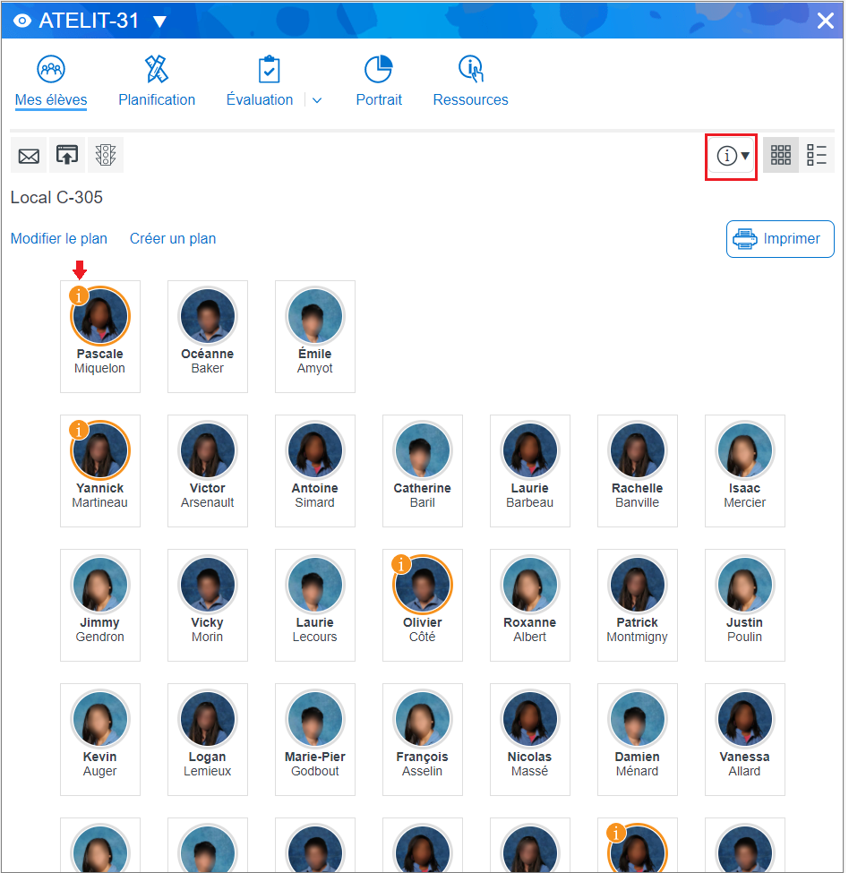 Sachez que tous les élèves qui bénéficient de moyens d’adaptation sont entourés d’un cercle jaune accompagné d’une icône.