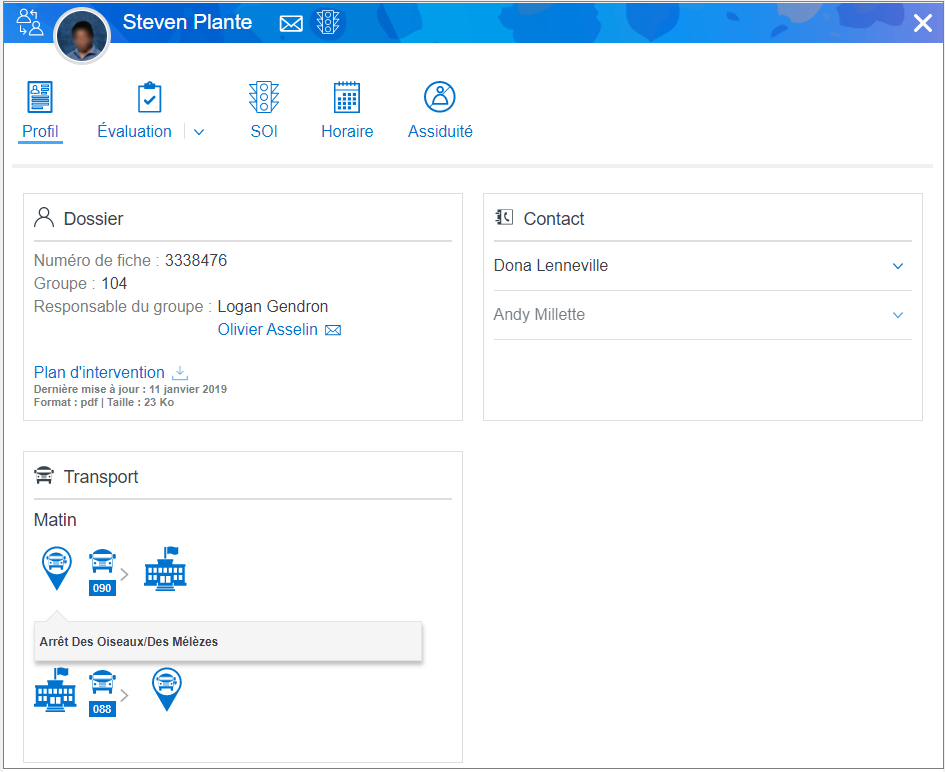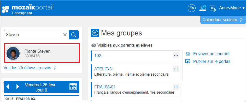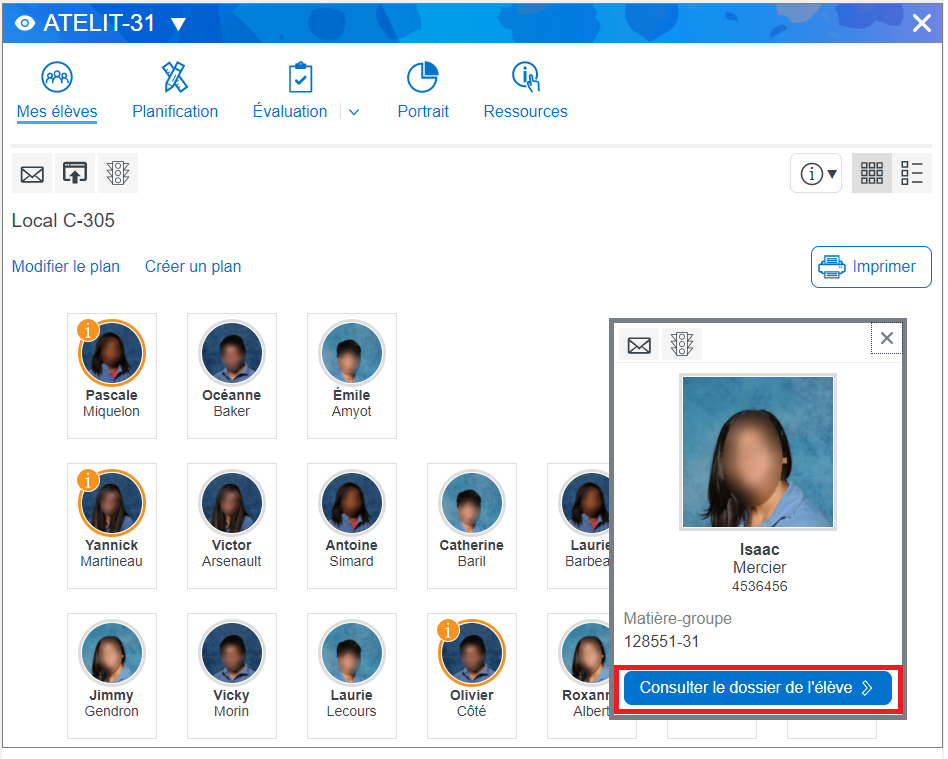 2. Cliquer sur la photo ou le nom de l’élève.